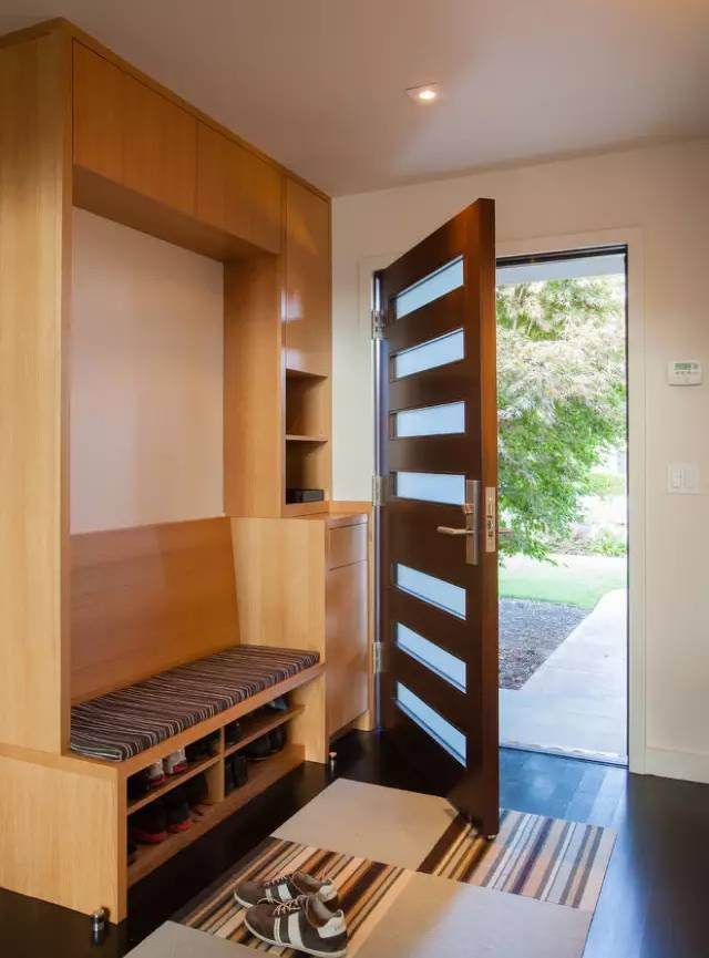 看完這些是不是覺得缺少一點點什么呢?沒錯,沒有坐的地方換鞋!下面這些鞋柜設(shè)計可以借鑒哦。